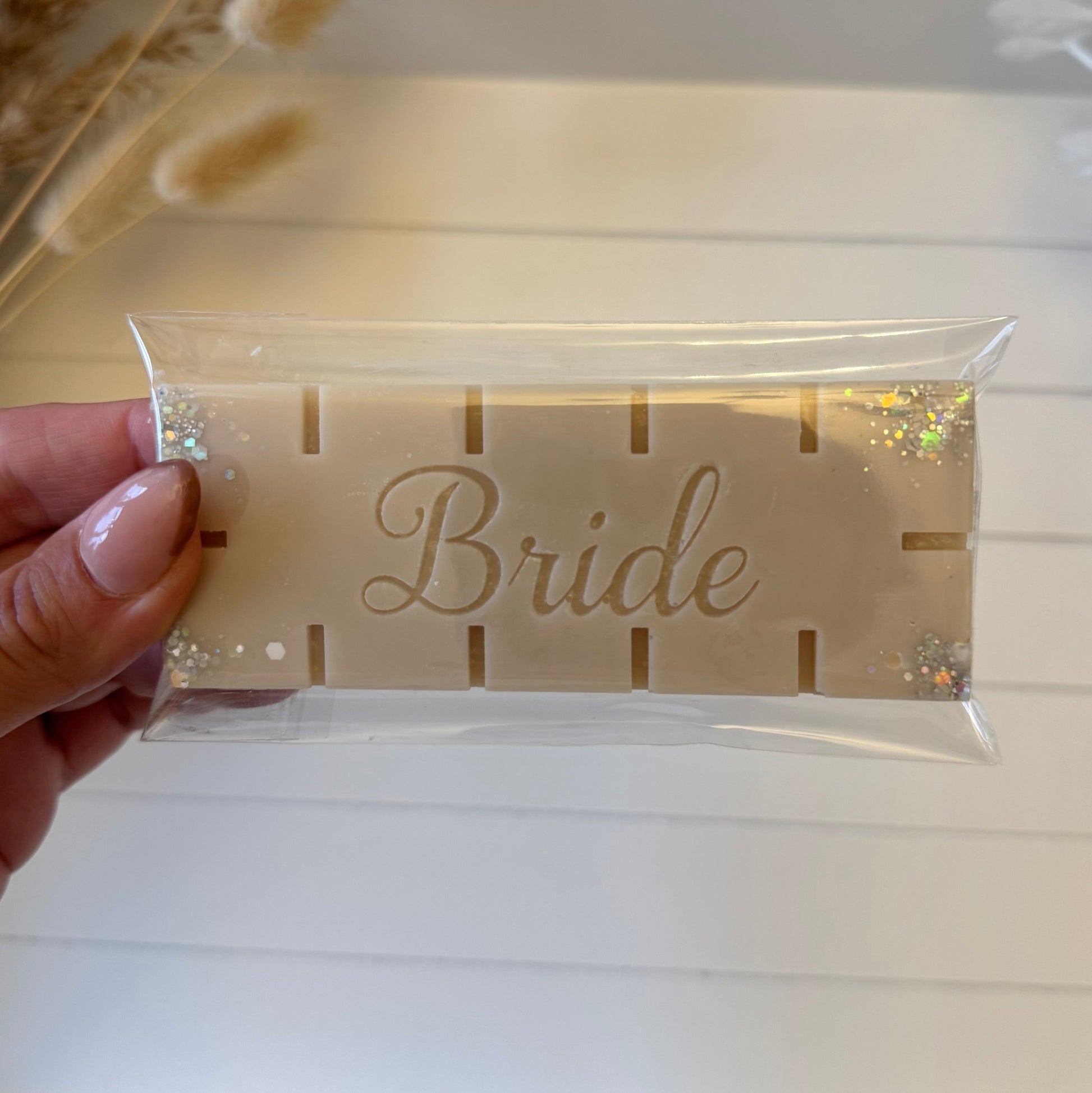 Our Bride snap bar contains approximately 50g of wax in the scent Belle.
