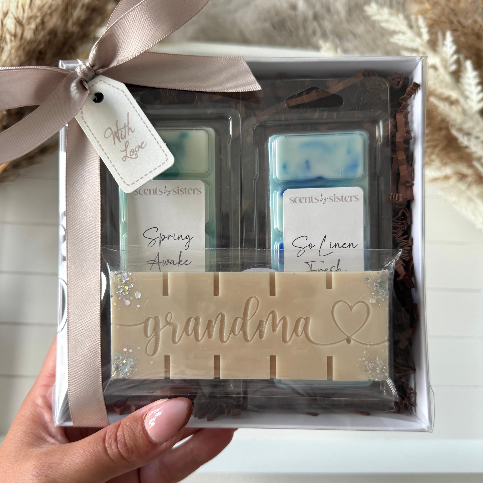 Our Grandma gift set contains a 'grandma' themed snap bar in the scent, Belle, plus two additional snap bars in either of the following scents: