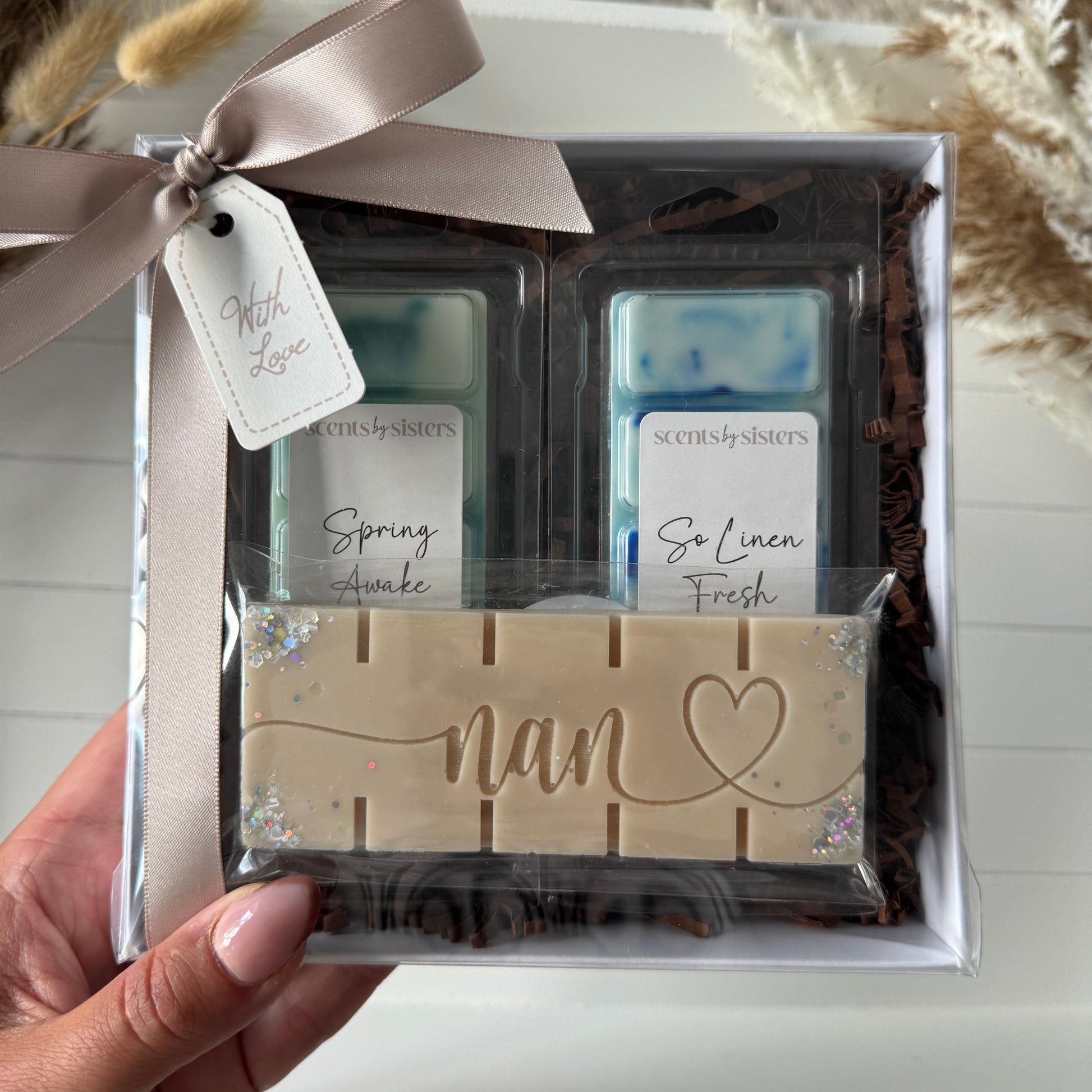 Our Nan gift set contains a 'nan' themed snap bar in the scent, Belle, plus two additional snap bars in either of the following scents: