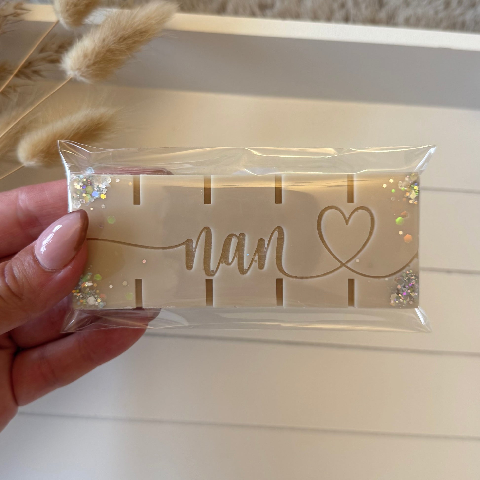 Our Nan snap bar contains approximately 50g of wax in the scent Belle.